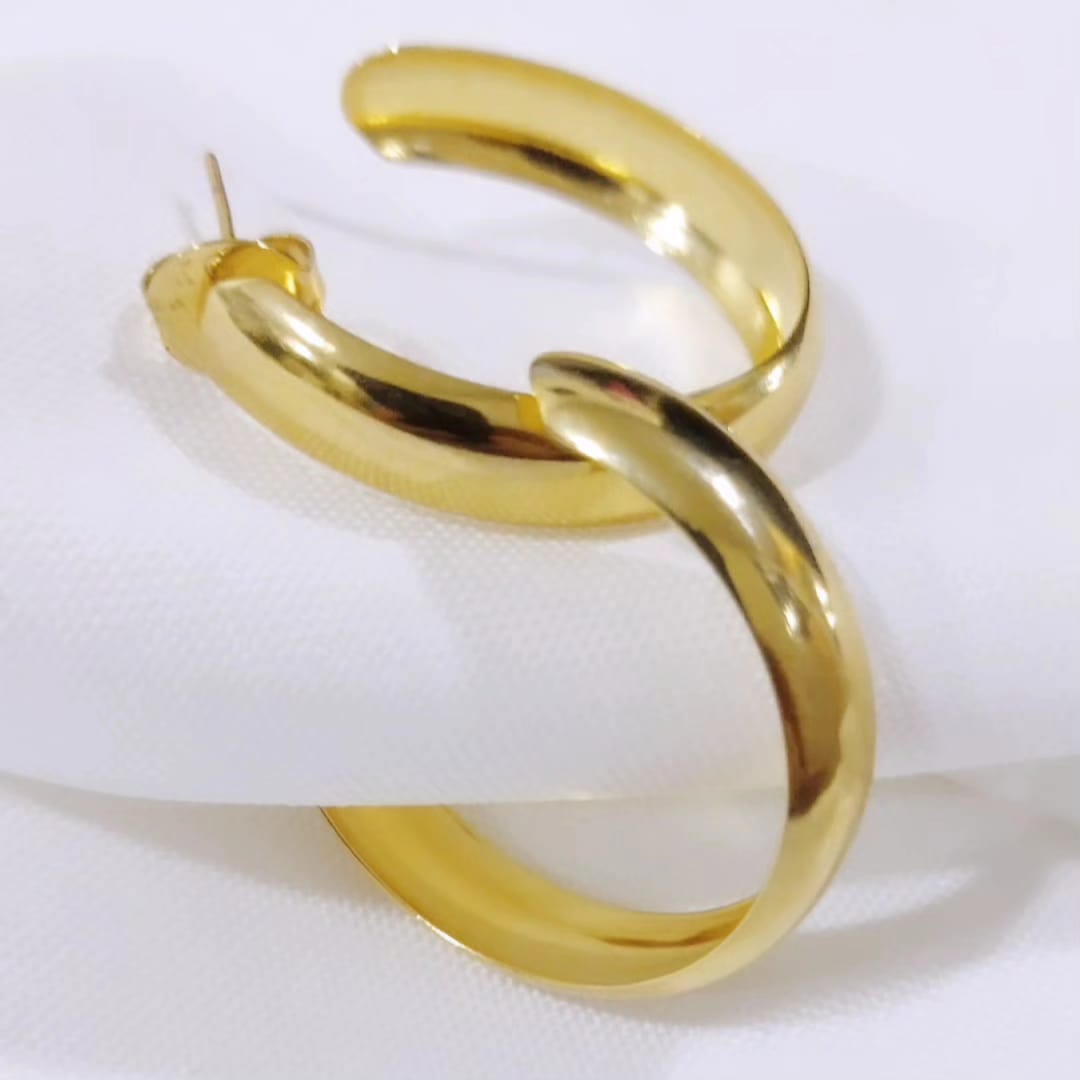 O brinco de argola tamanho médio arredondado, fica perfeito nos rostos quadrados e ovais. Nesse caso você pode utilizá-lo com pingente de como olho grego, pedra, dente de sabre, entre outros, ou pode somente a argola.