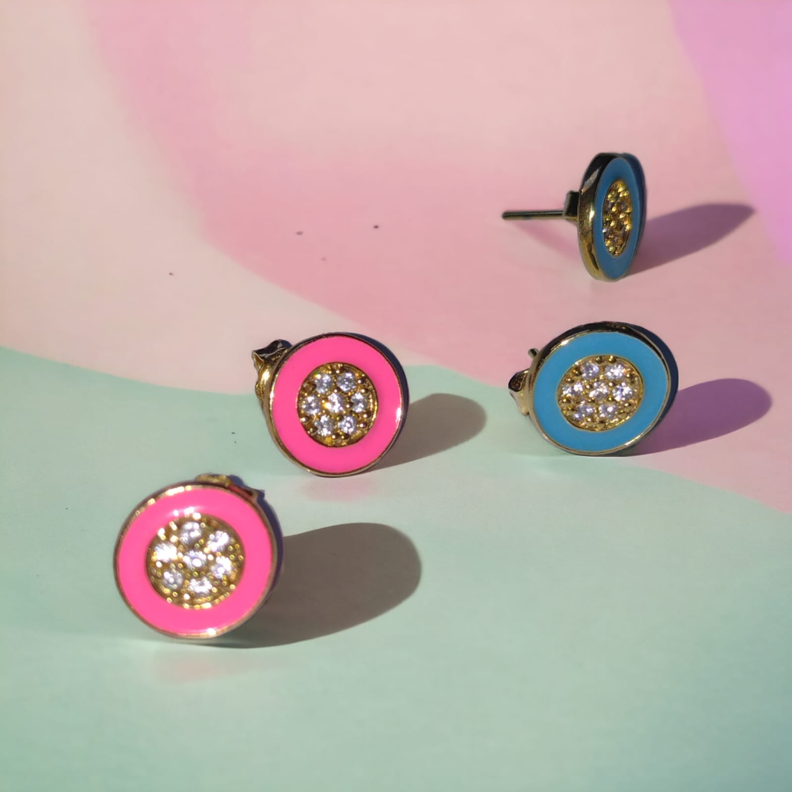 Brincos banho ouro 18k comcistais e resina esmaltada