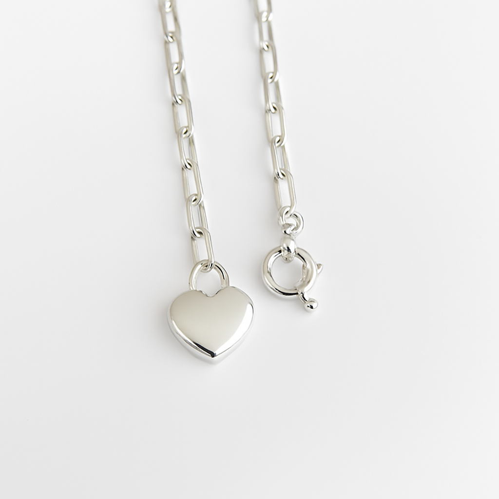 O Colar Elo Cartier com Pingente Coração Liso é produzido em Prata 925 de alta qualidade, garantindo brilho duradouro e resistência.